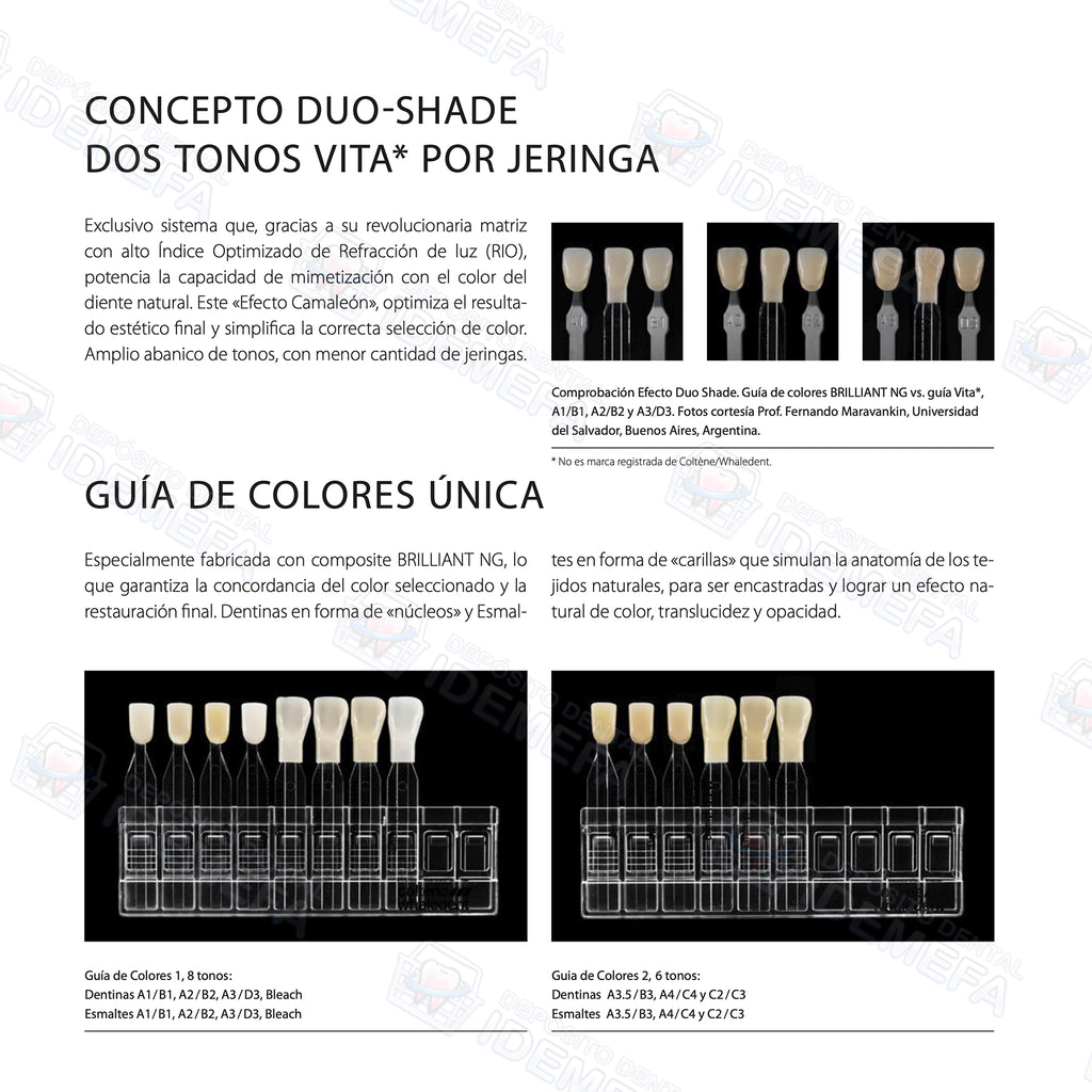 La resina nanohíbrida universal Brilliant NG es un material de restauración dental de alta calidad, ideal para odontólogos que buscan un rendimiento excelente y durabilidad superior. Con su fórmula de nanotecnología de última generación, esta resina ofrece una estética brillante y natural, perfecta para restauraciones en dientes anteriores y posteriores. Su versatilidad y adhesión a la estructura dental garantizan resultados duraderos y estéticamente atractivos para los pacientes. Además, su manejo fácil y su amplia gama de tonos permiten una personalización precisa para cada caso clínico. Con la resina nanohíbrida Brilliant NG, los odontólogos pueden confiar en un material de primera categoría para lograr resultados sobresalientes en sus tratamientos de restauración dental.